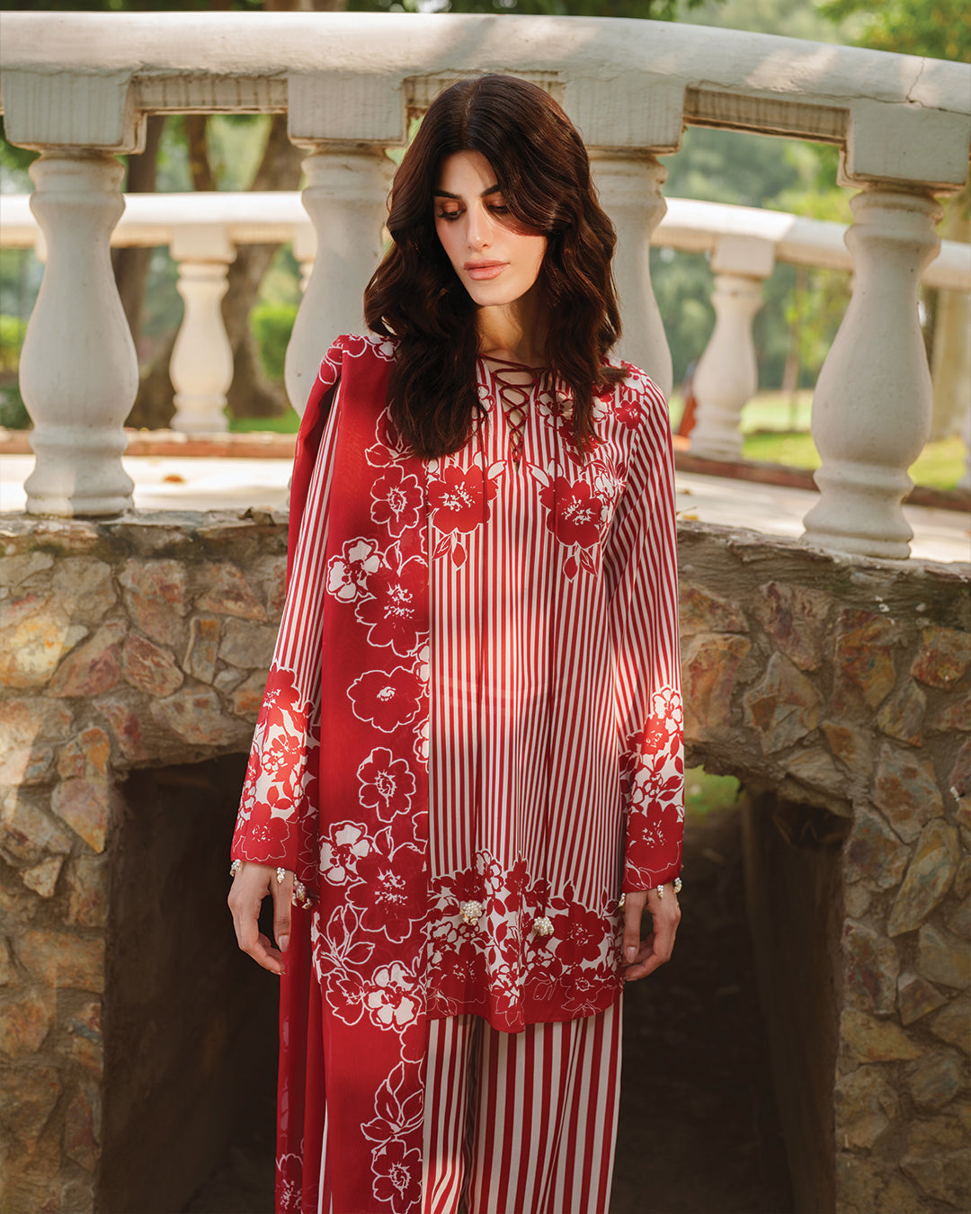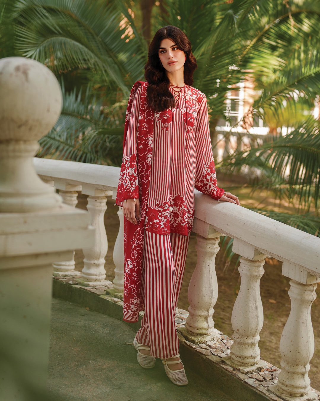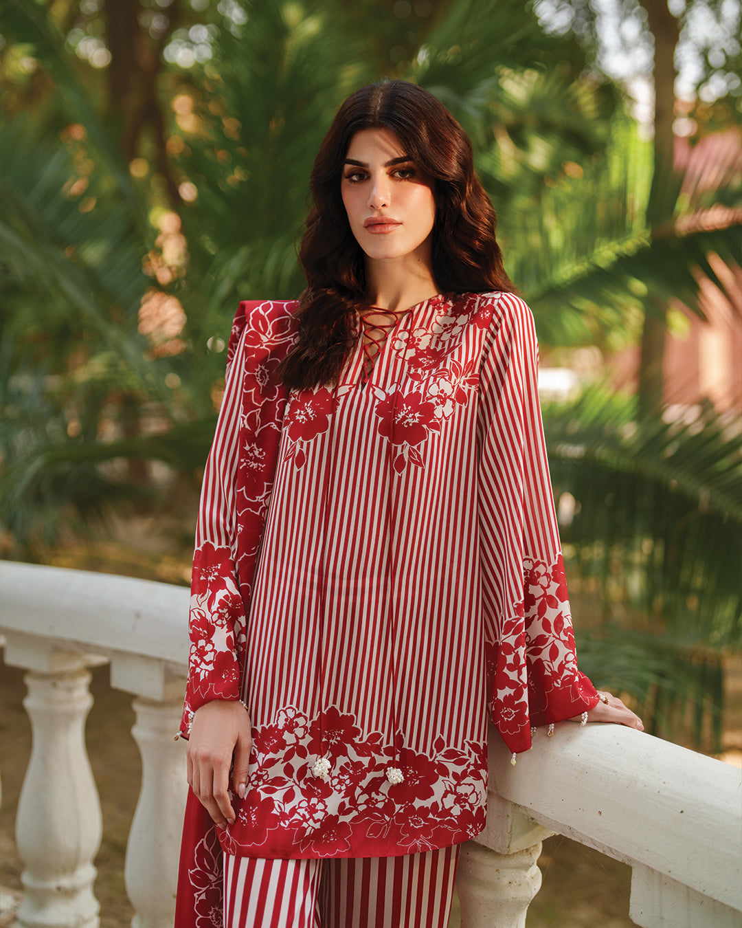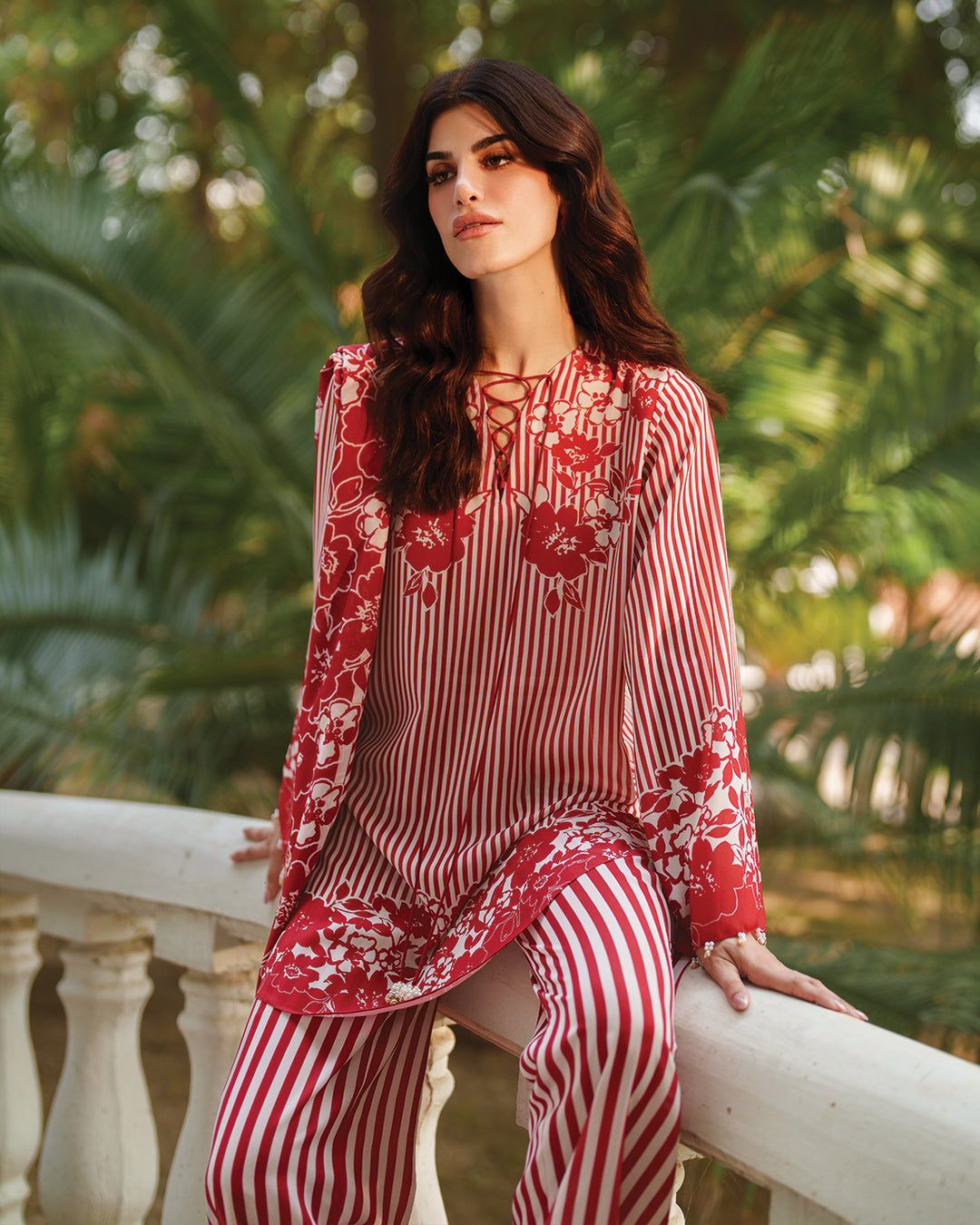Detail: This co-Ord set beautifully fuses classic stripes with vibrant floral motifs, creating a timeless yet contemporary look. Featuring a detailed V-neckline and thoughtfully designed sleeves, the relaxed-fit shirt pairs effortlessly with wide-leg trousers for ultimate comfort and style. Perfectly suited for daily wear, this outfit combines ease and elegance for your everyday wardrobe